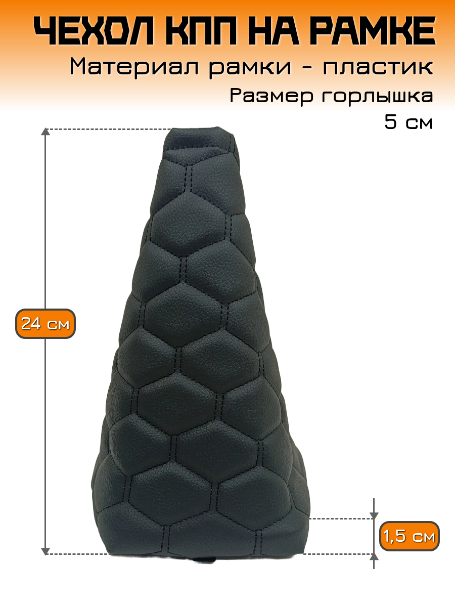 Чехол КПП, пыльник на ВАЗ-11183, ВАЗ-11193 Лада Калина-1 (Lada Kalina-1) - черный с черной строчкой "соты" информация: