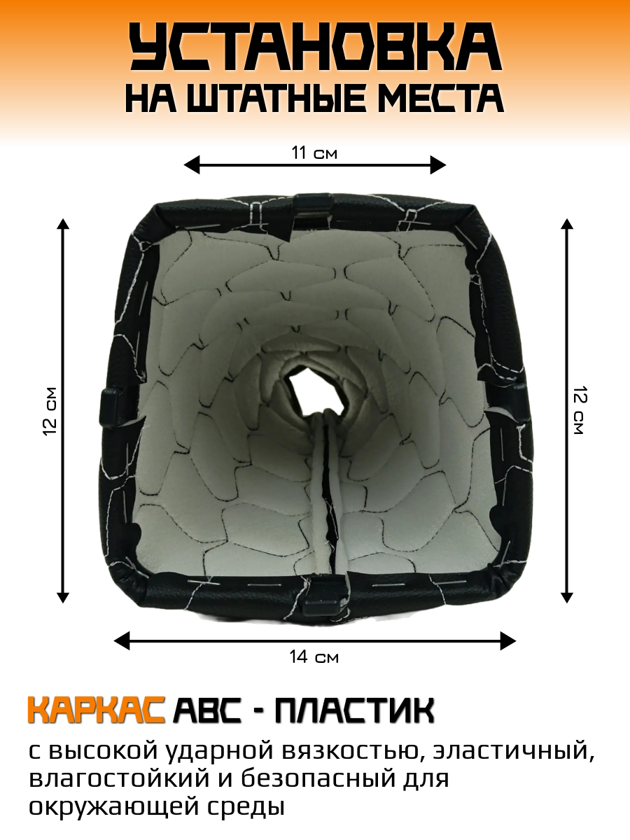 Чехол КПП, пыльник на ВАЗ-11183, ВАЗ-11193 Лада Калина-1 (Lada Kalina-1) - черный с белой строчкой "соты" информация: