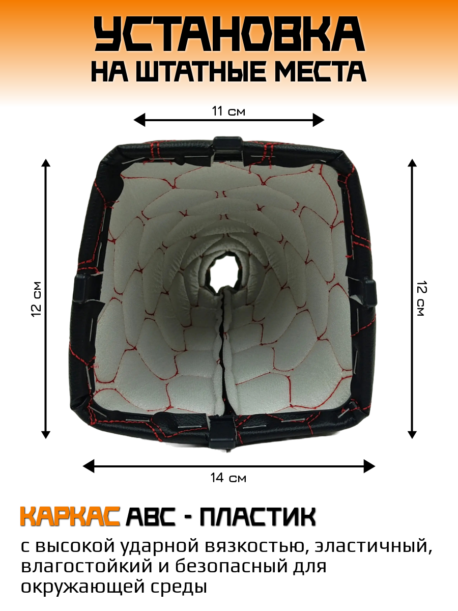 Кожух рычага КПП, экокожа с красной строчкой на ВАЗ 2113, 2114, 2115