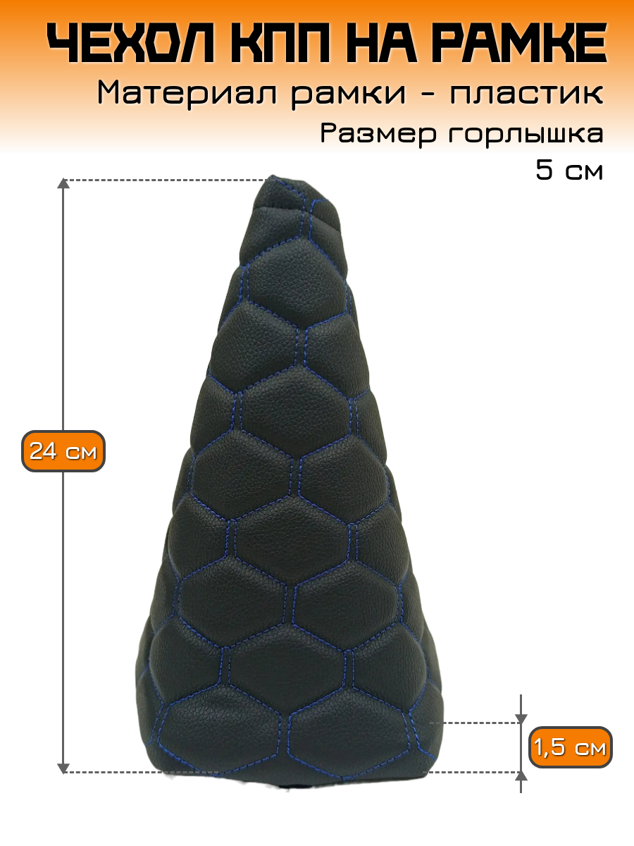 Чехол КПП, пыльник на ВАЗ-11183, ВАЗ-11193 Лада Калина-1 (Lada Kalina-1) - черный с синей строчкой "соты" информация: