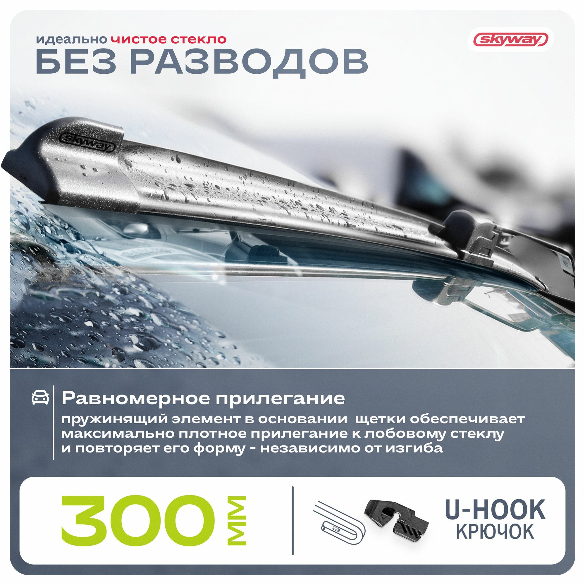 Щетка стеклоочистителя бескаркасная Skyway 28"/710 мм в пакете