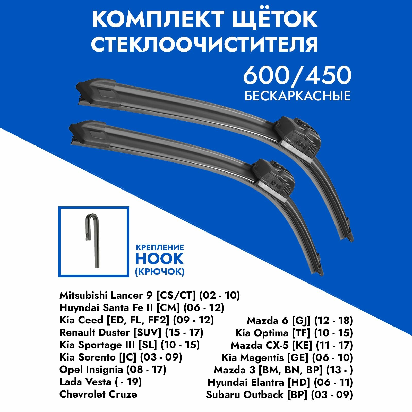 Щетки стеклоочистителя 600 450 Lada Vesta Chevrolet Cruze Mazda комплект 2 шт для Лада Веста Шевролет Круз Мазда информация: