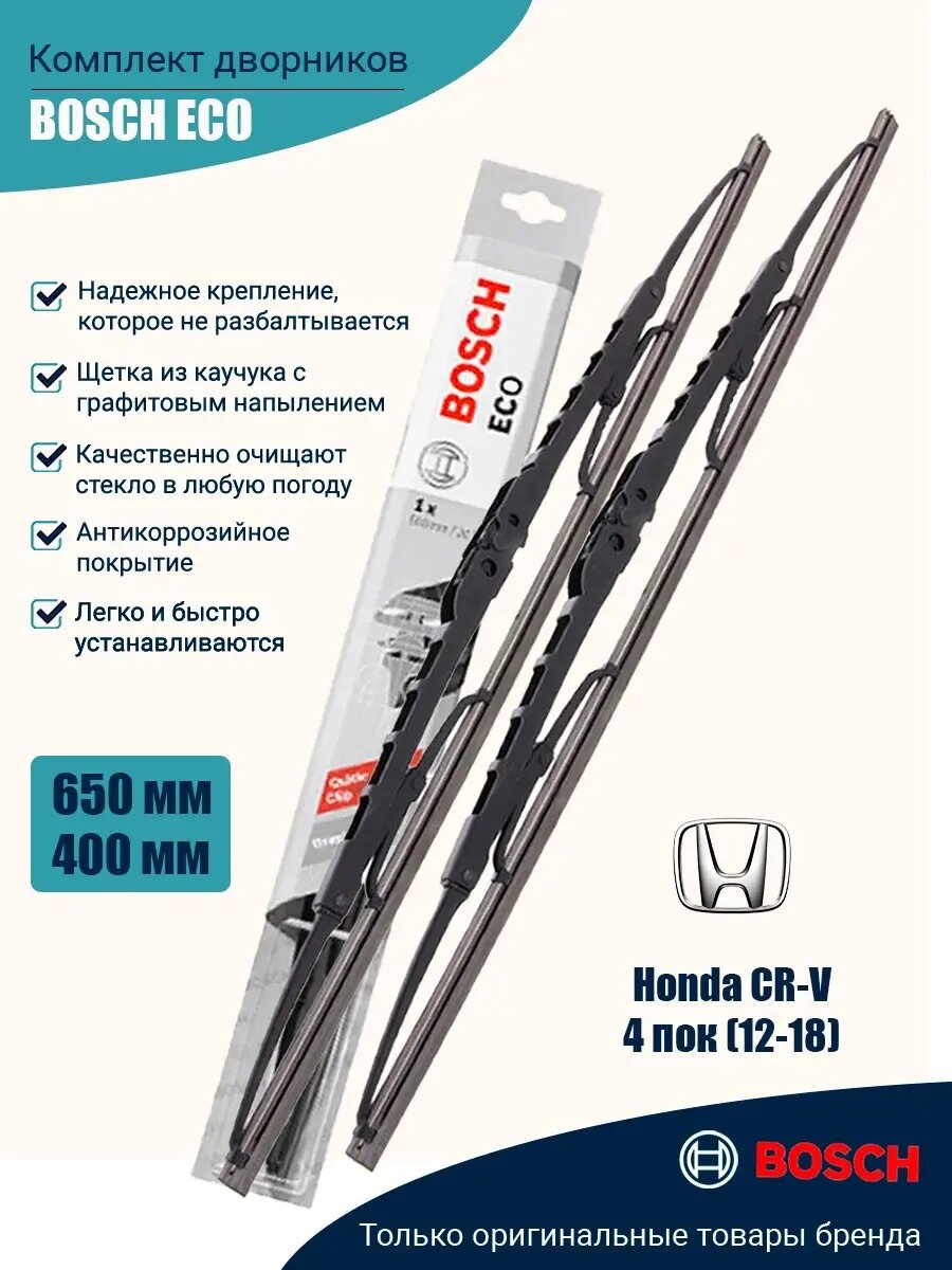 10 цен на Комплект дворников BOSCH ECO 650мм/400мм, для: Honda CR-V 4 пок (12-18)