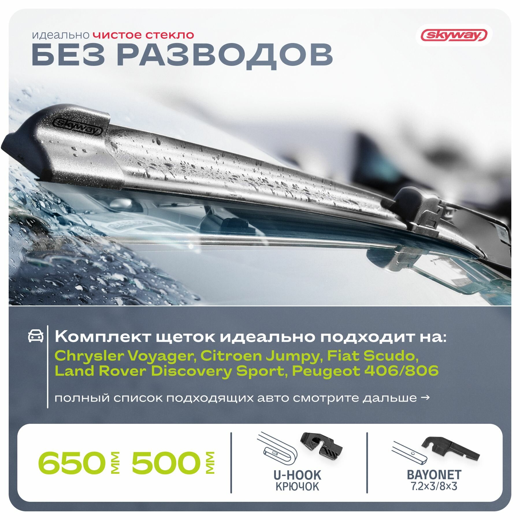 Дворники автомобильные бескаркасные 650 500 мм Toyota Land Cruiser Prado, Toyota Highlander, Peugeot 806, Chrysler Grand Voyager, Citroen Evasion, Lexus GX460 информация: