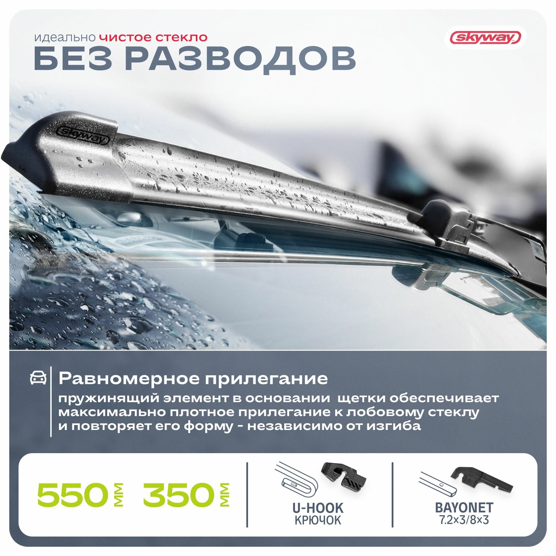 Дворники автомобильные бескаркасные 550 350 мм Chevrolet Spark, Hyundai Getz (TB), Lancia Musa (184), Mitsubishi Space Star, Nissan Juke (F15), Toyota Echo, Volkswagen Fox (5Z1) информация: