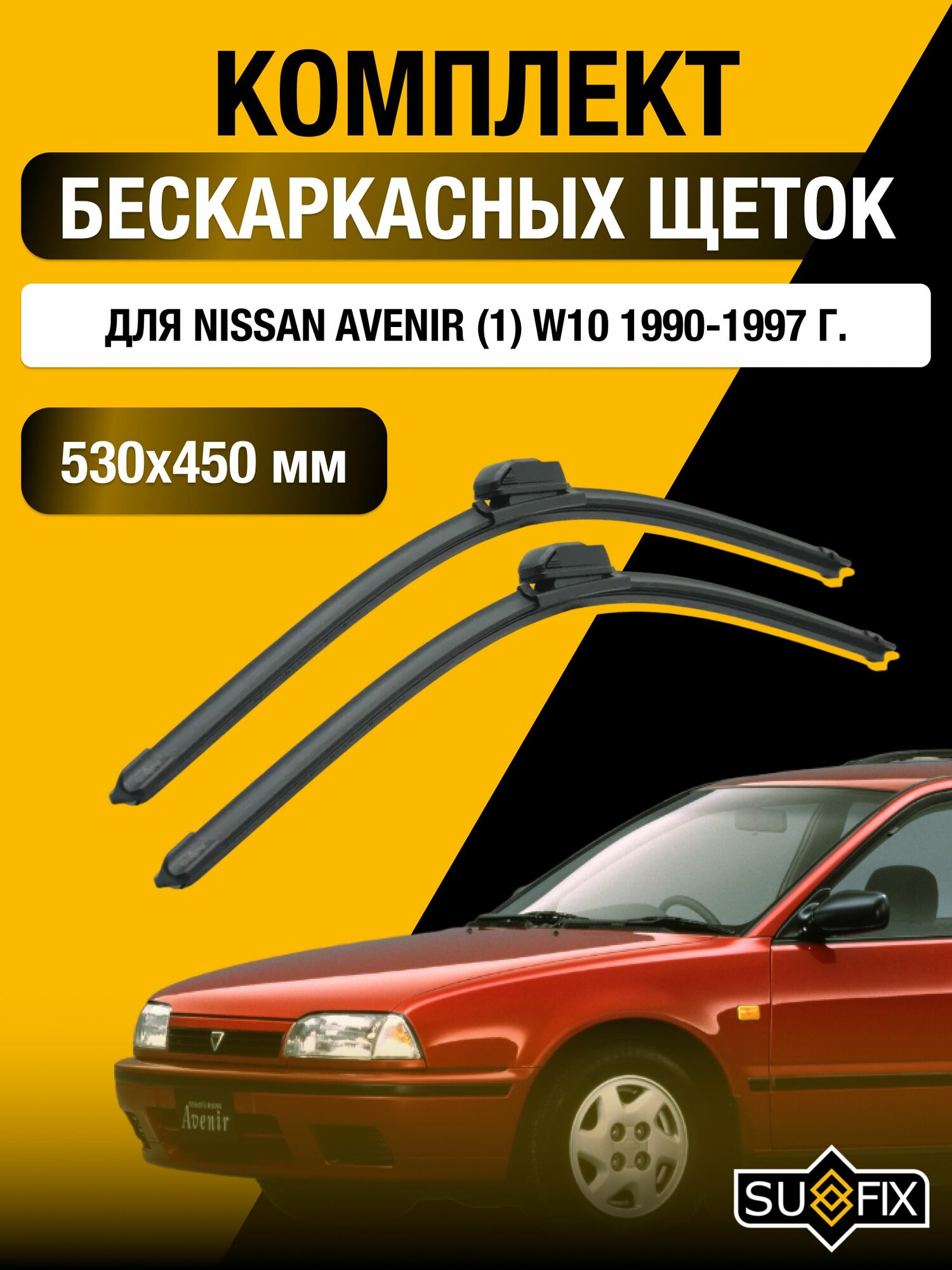 Дворники автомобильные для Nissan Avenir (W10) / 1990 1991 1992 1993 1994 1995 1996 1997 / Бескаркасные щетки стеклоочистителя комплект 530 450 мм Ниссан Авенир информация: