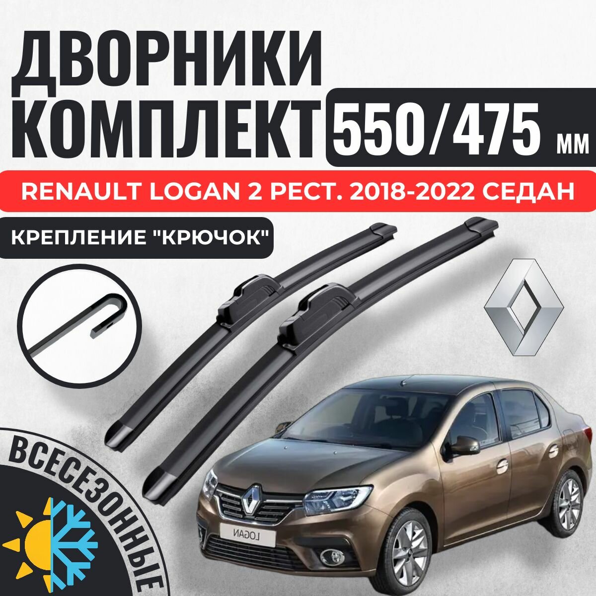 10 цен на 550 475 Щетки стеклоочистителя Renault Logan 2 Рестайлинг 2018-2022 седан / Дворники бескаркасные Рено Логан
