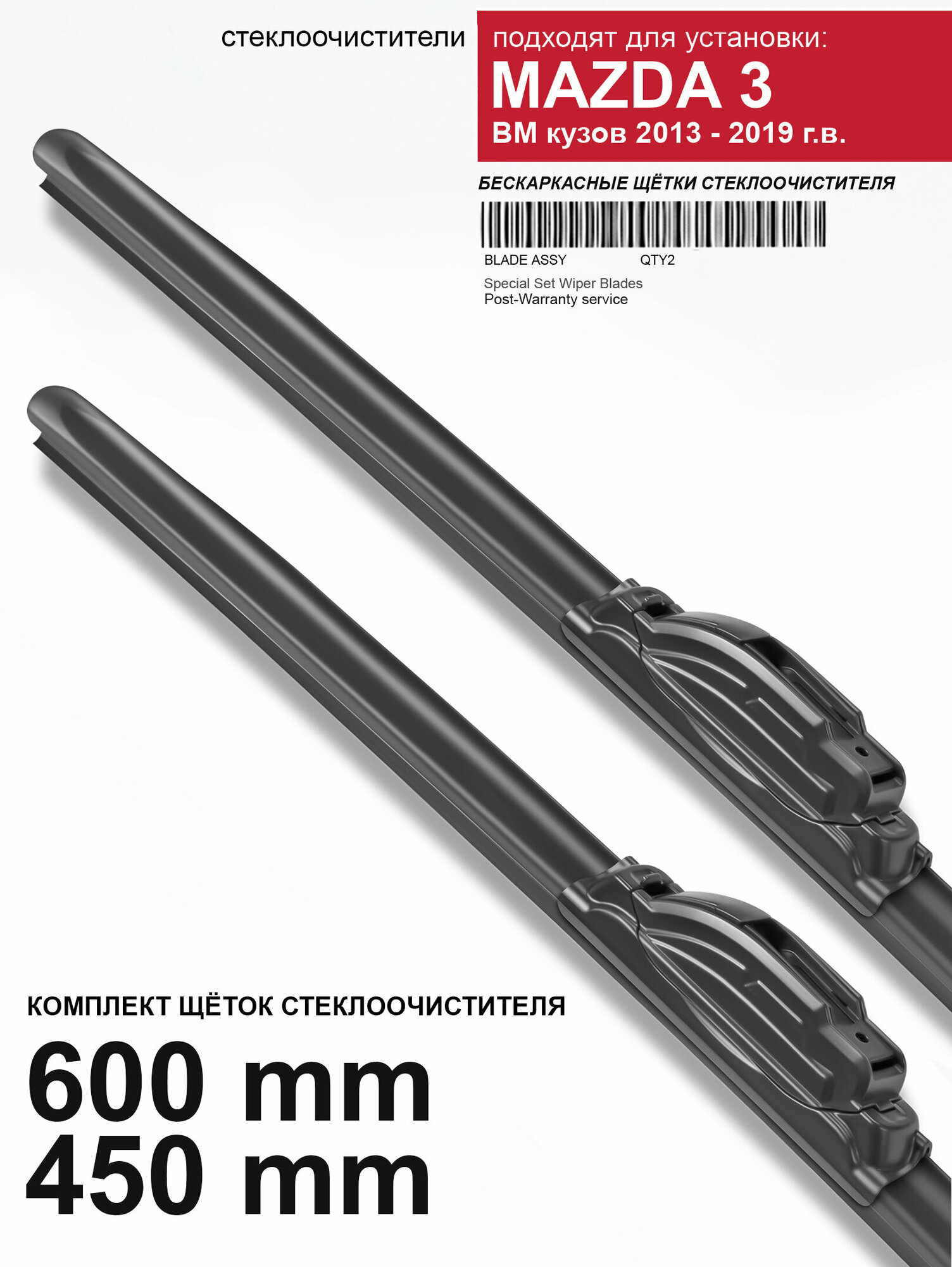 Щетки стеклоочистителя для Mazda 3 BM кузов - бескаркасные дворники Maздa 3 BM кузов, 600 450 мм комплект. информация: