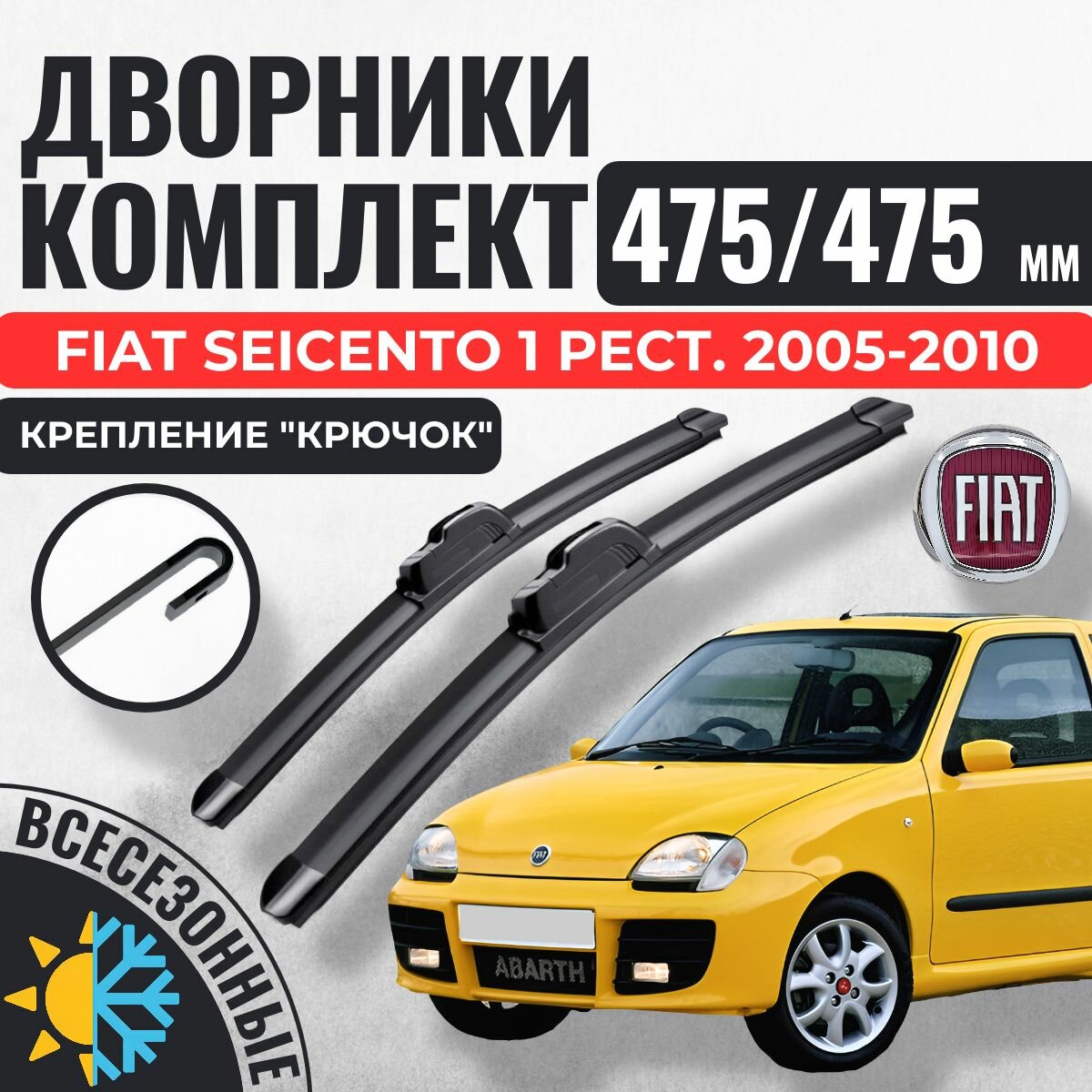 475 475 Щетки стеклоочистителя Fiat Seicento 1 Рестайлинг 2005-2010 хэтчбек 3 дв. / Дворники бескаркасные Фиат Сейеченто информация: