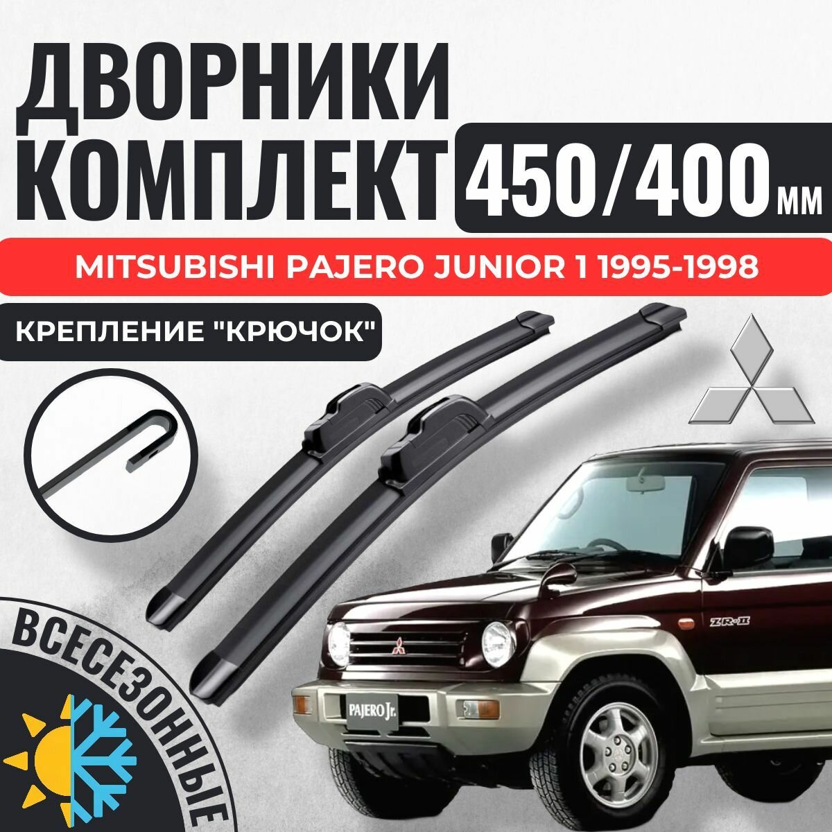 450 400 Щетки стеклоочистителя Mitsubishi Pajero Junior 1 поколение 1995-1998 / Дворники бескаркасные Мицубиси Митсубиси Паджеро Джуниор Пажеро информация: