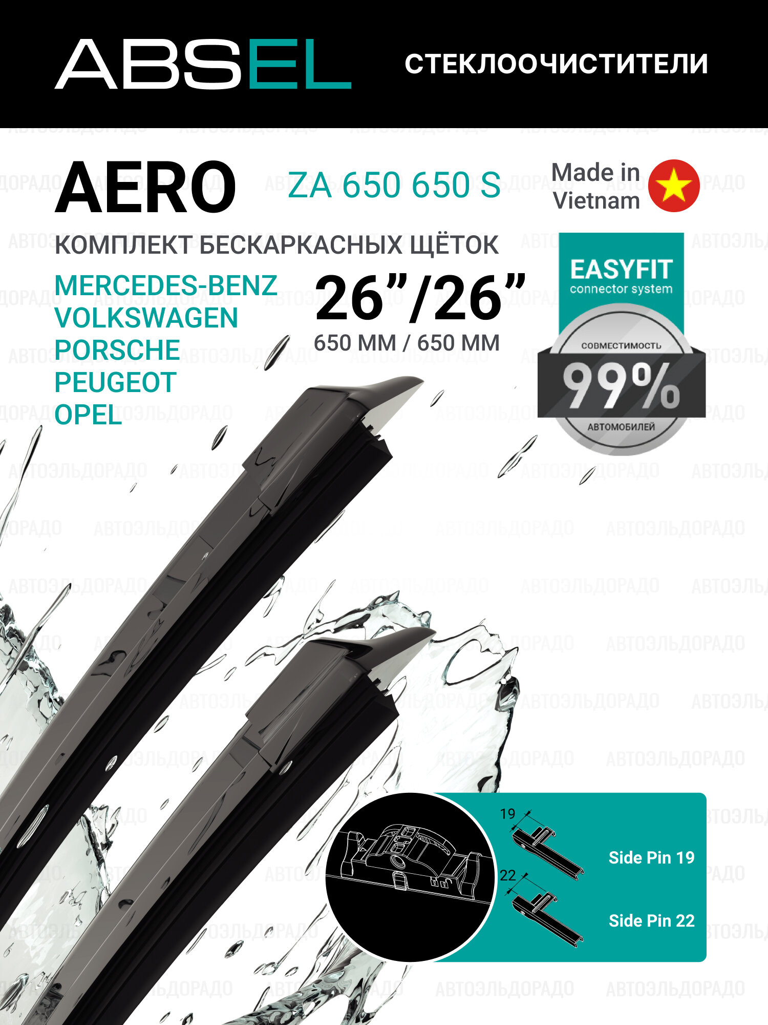 ABSEL Щётки стеклоочистителя бескаркасные ZA650650S 650мм/650мм, комплект для VW TOUAREG 2002-2018; PORSCHE CAYENNE 2002-н. в. информация: