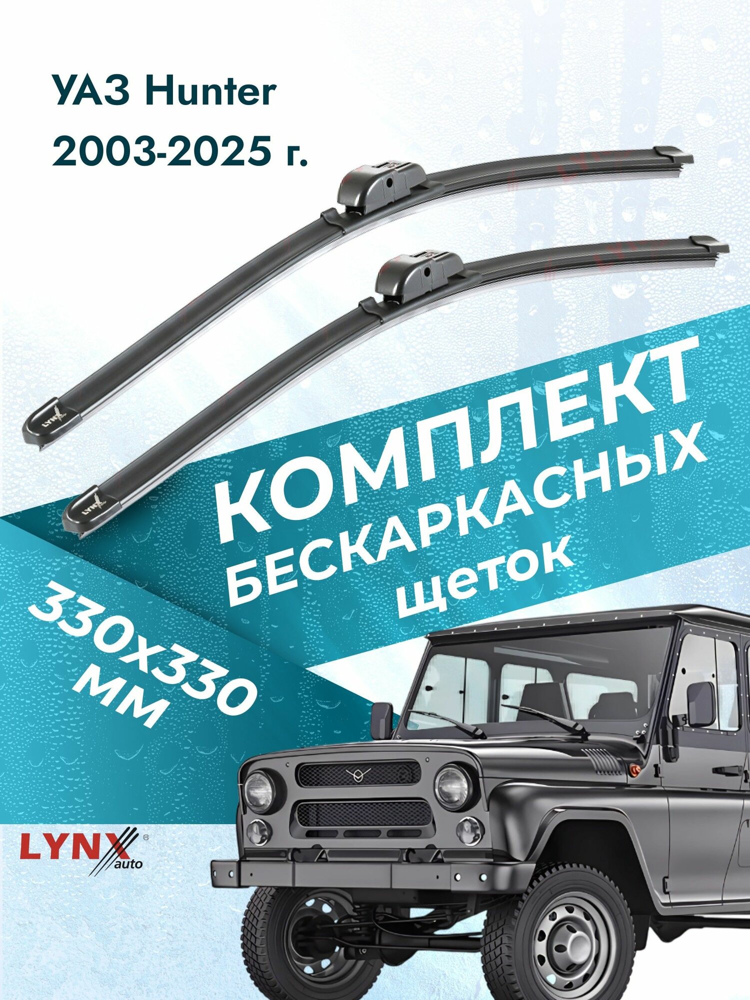 Дворники бескаркасные для УАЗ Hunter / 2003 - 2025 / Комплект щеток стеклоочистителя 330 330 мм UAZ Хантер информация: