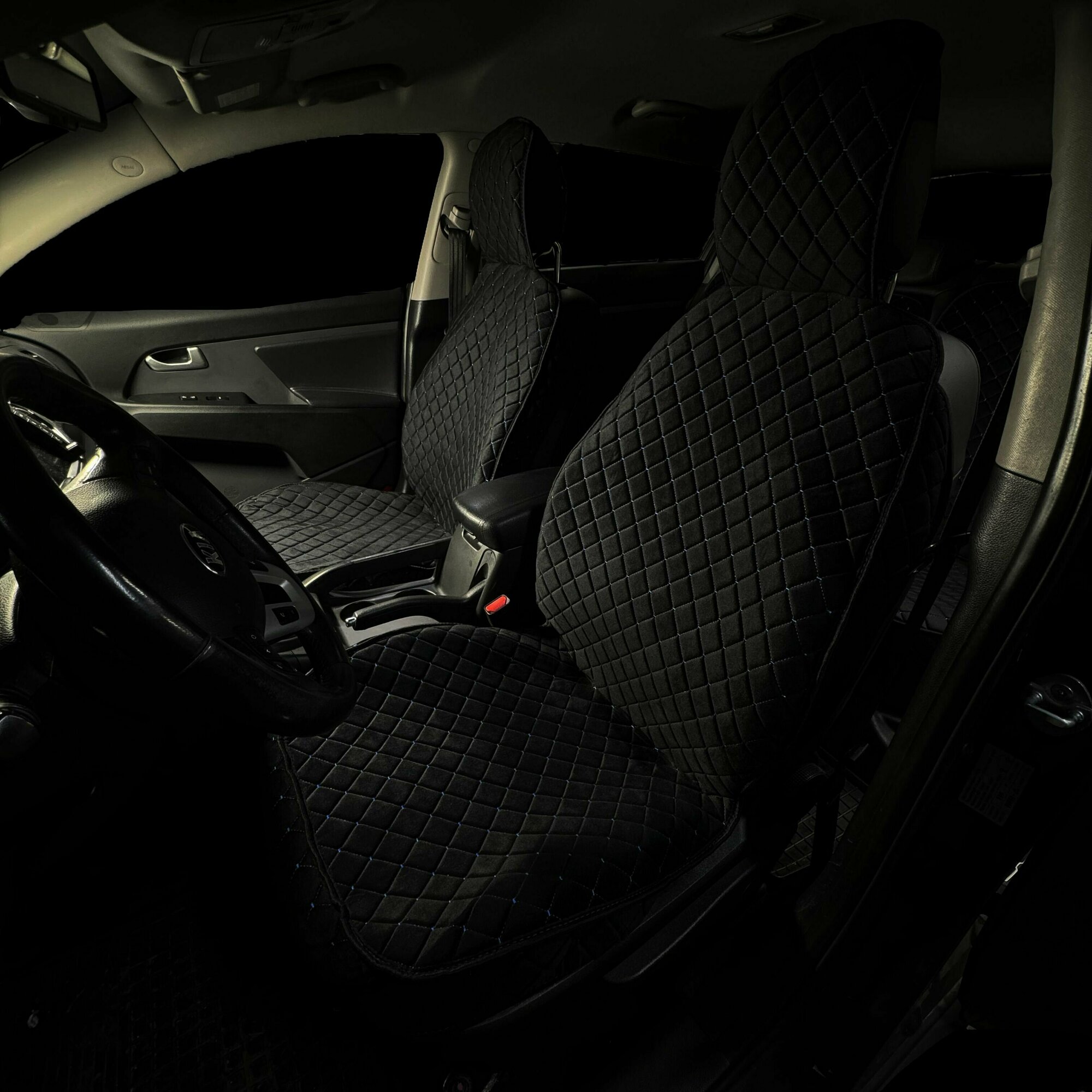 Отзывы на Накидки для Киа к5 (2015 - 2020) седан / Kia K5 на передние сиденья G-Ultra, Велюр, Черный с синей строчкой