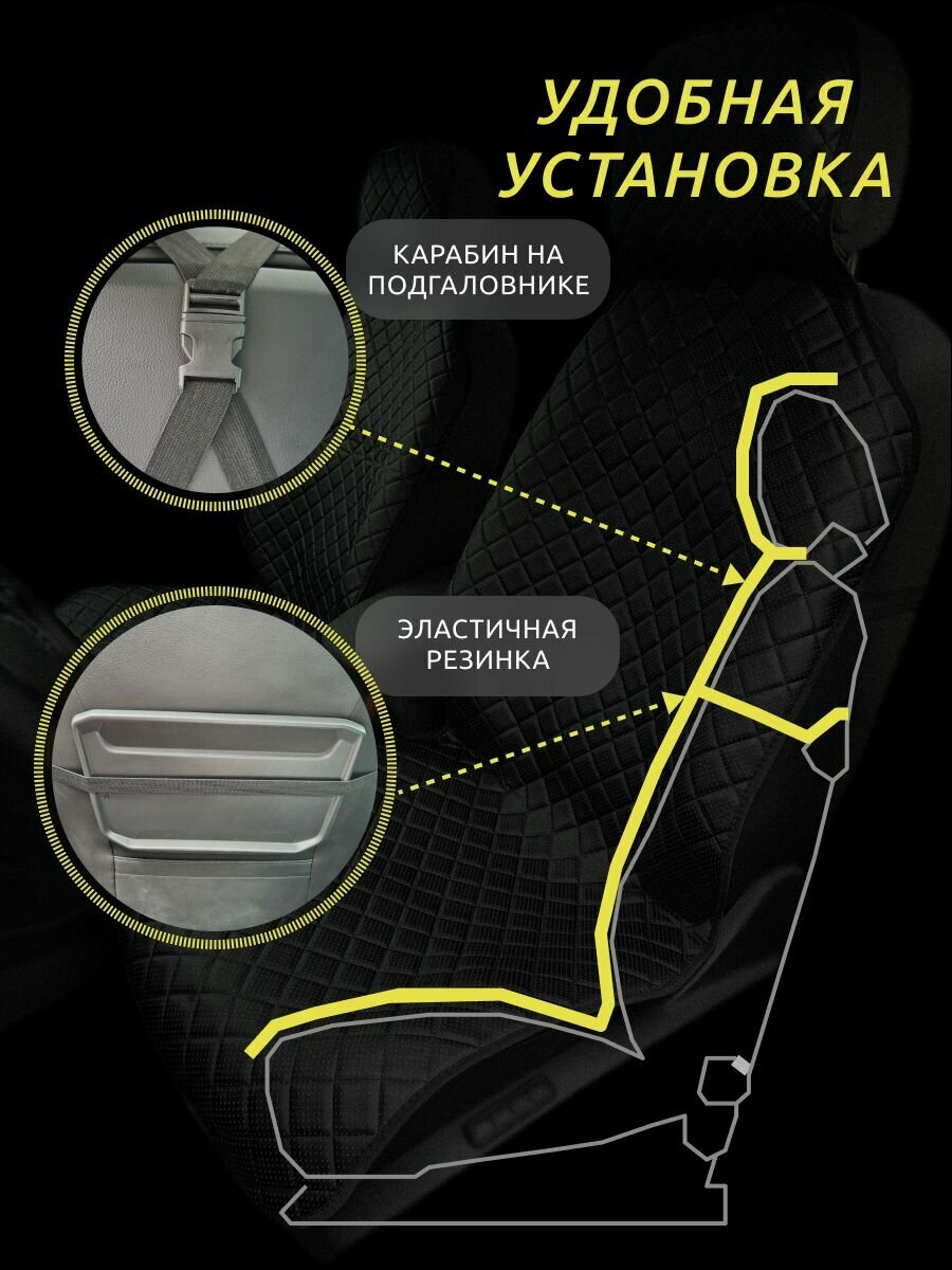 Отзывы на Накидки для Киа К900 (2018 - 2022) седан / Kia K900 на передние сиденья, ромб, Экокожа, Черный
