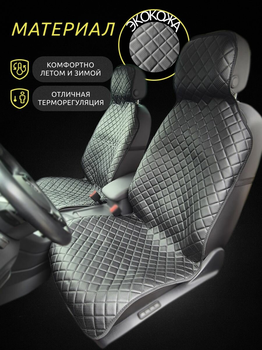 Накидки для Киа К900 (2018 - 2022) седан / Kia K900 на передние сиденья, ромб, Экокожа, Черный с серой строчкой 2 690 ₽