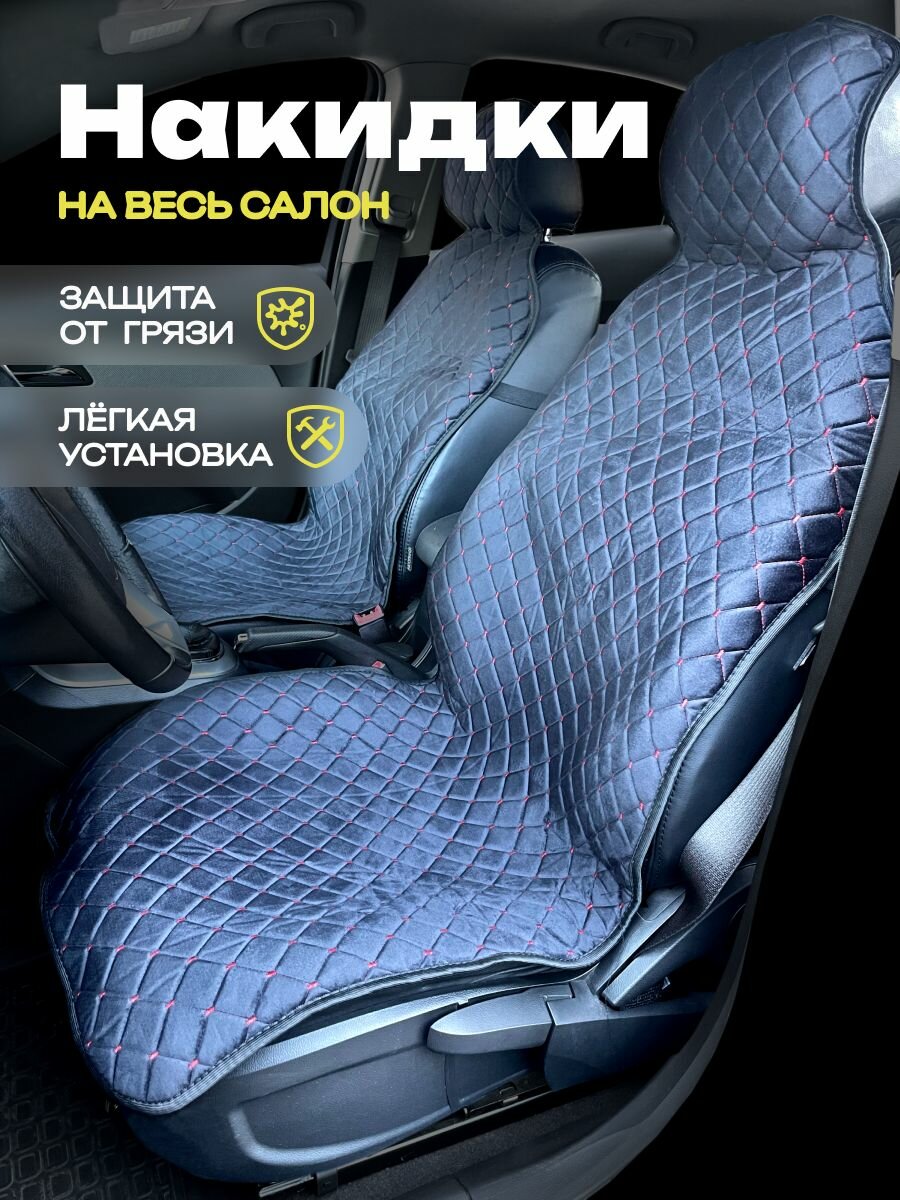 Отзывы на Накидки для Киа К900 (2018 - 2022) седан / Kia K900 на весь салон с подголовниками, ромб, велюр, черный с красной строчкой