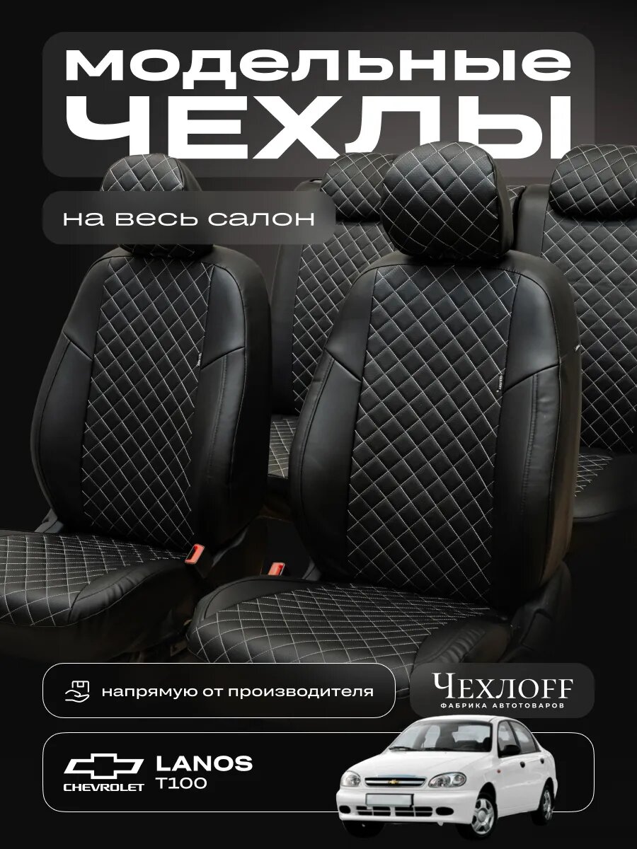 10 цен на Чехлы ЧехлоFF для Шевроле Ланос, экокожа, чёрный, передние/задние, комплект