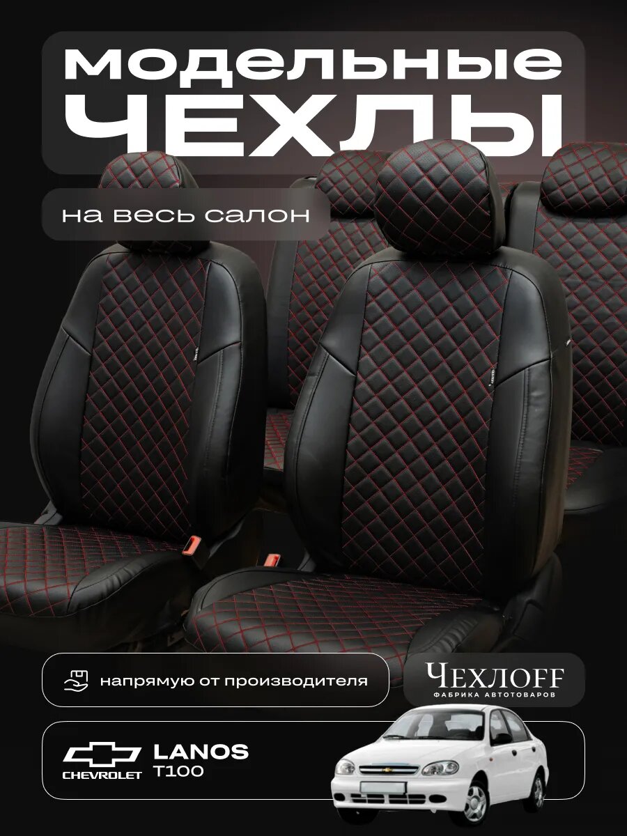 10 цен на Чехлы ЧехлоFF для Шевроле Ланос, экокожа, чёрно-красные, передние/задние, комплект