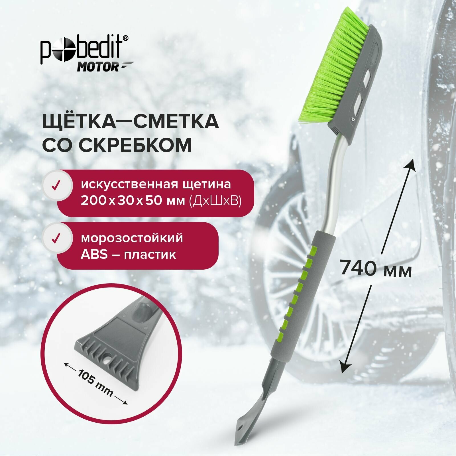 Щетка автомобильная для снега 740 мм Pobedit со скребком 200х50 мм информация: