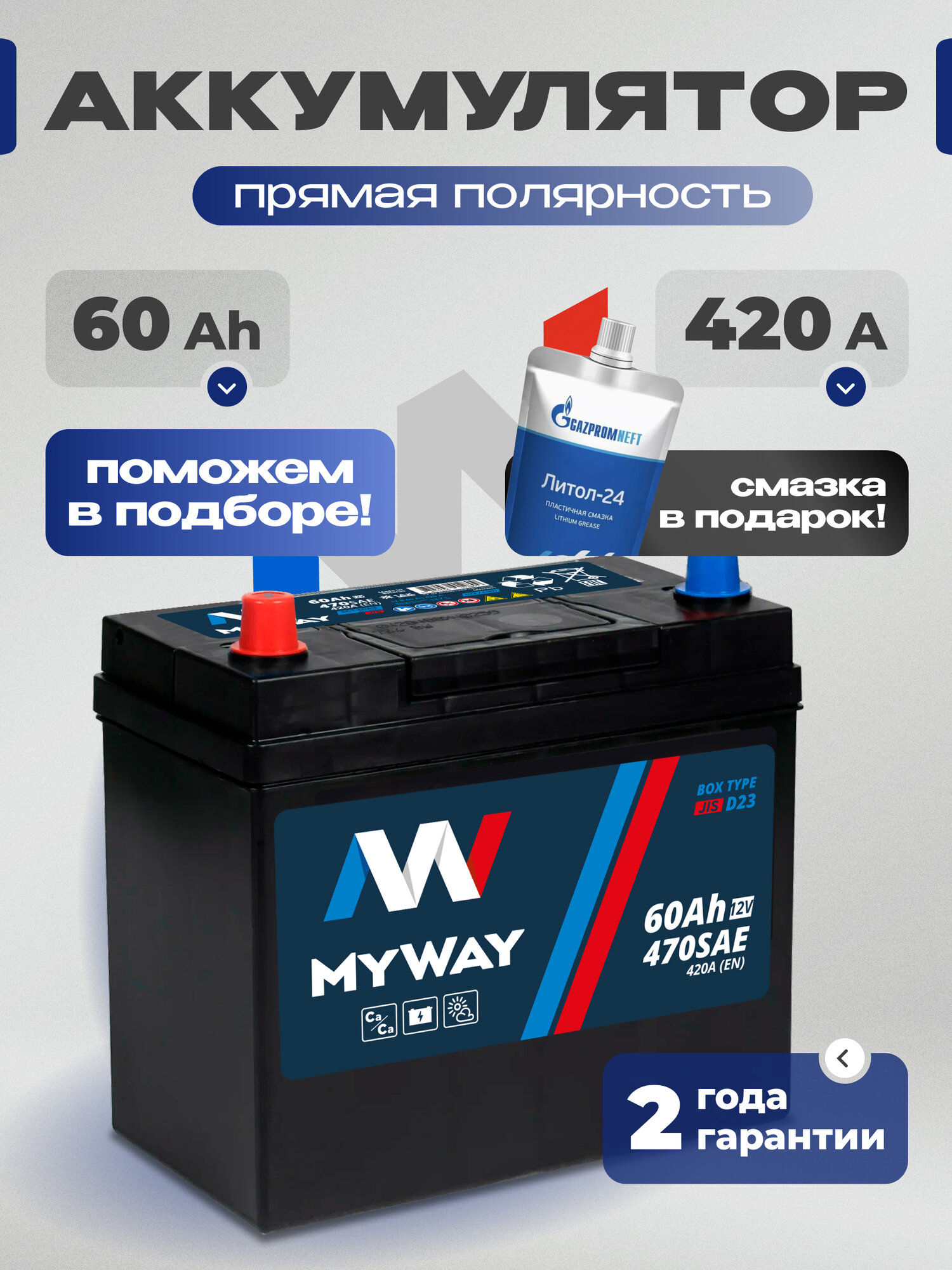Аккумулятор автомобильный 60 Ач 470 А прямая полярность Asia информация: