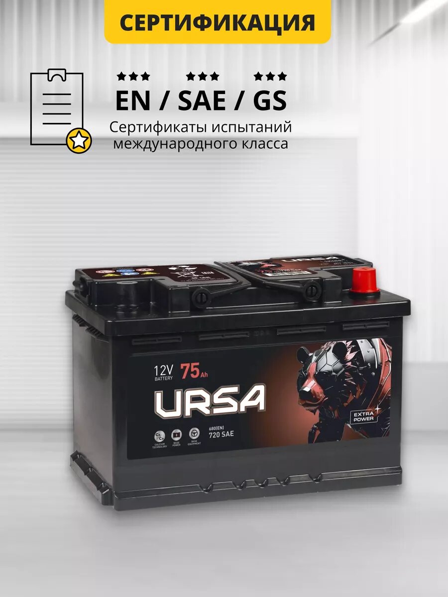 Аккумулятор автомобильный URSA Extra power 75 Ач 680 A обратная полярность 278x175x190 мм 10 715 ₽