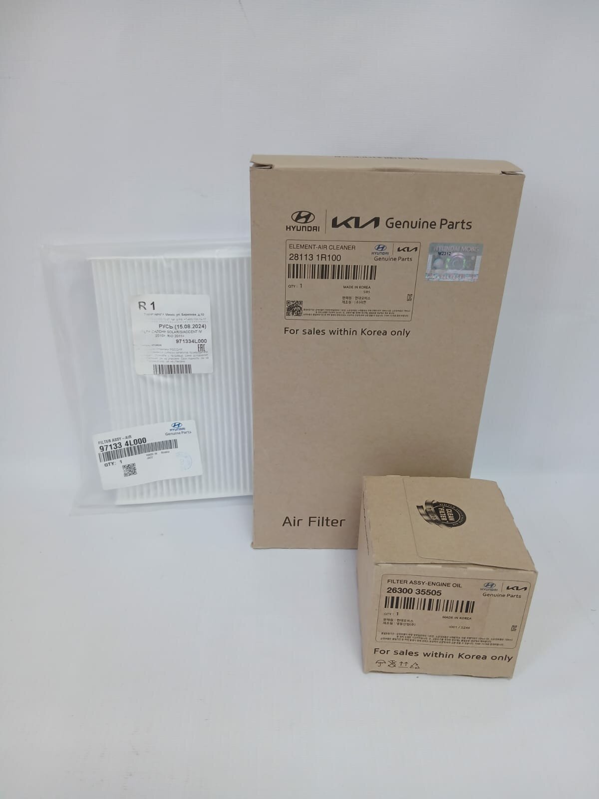 Комплект фильтров Hyundai-KIA, для Kia Rio, оригинальный, фильтрующий элемент информация: