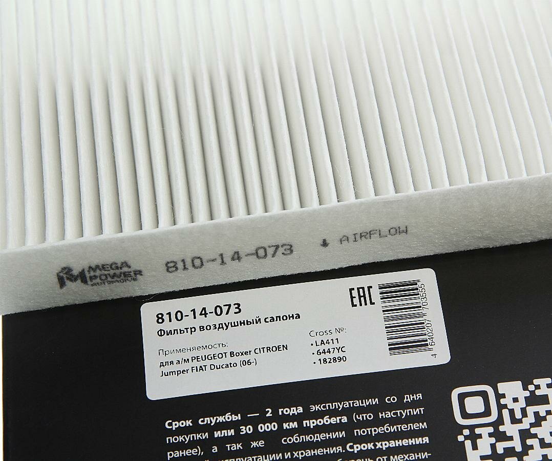 Отзывы на Фильтр салона Citroen Jumper/Fiat Ducato/Peugeot Boxer 2.2D/HDi/3.0HDi 06> 81014073 (Megapower)