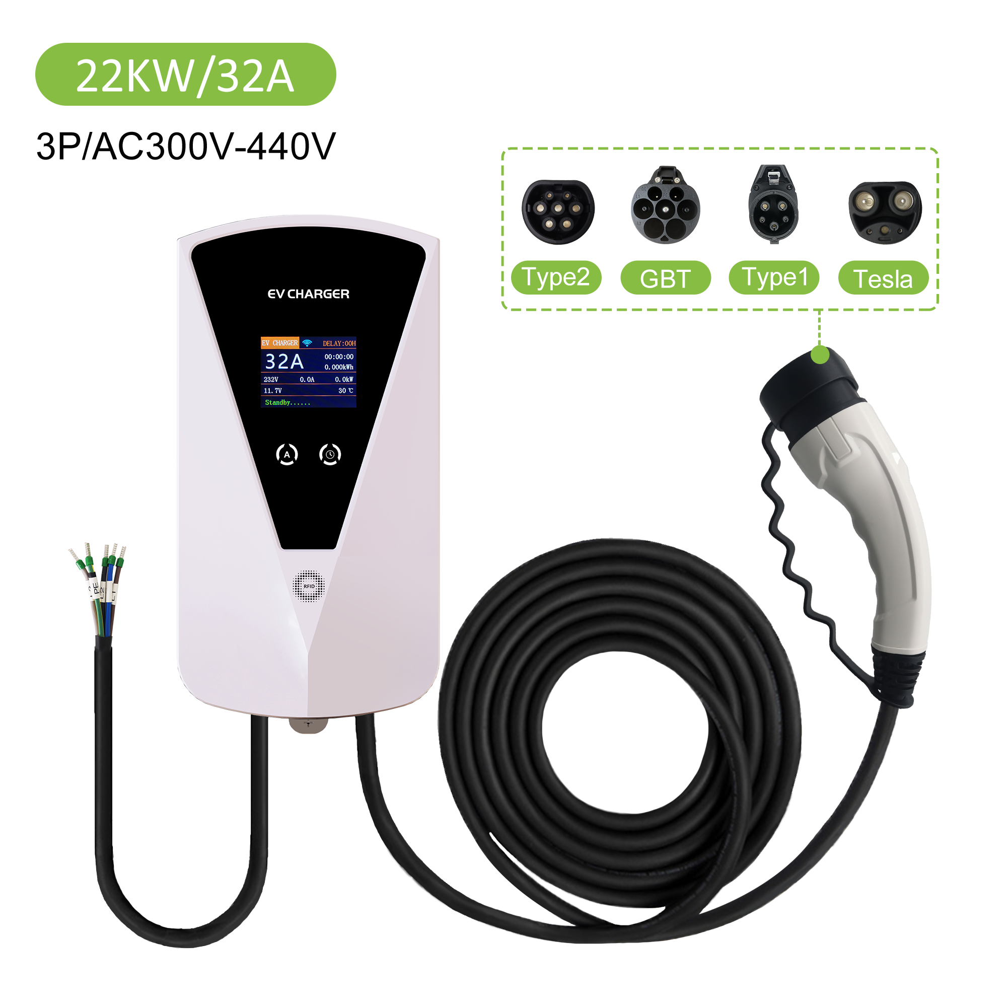10 цен на Зарядная станция для электромобилей Enjoe GBT AC, мощность 22 кВт, 5м