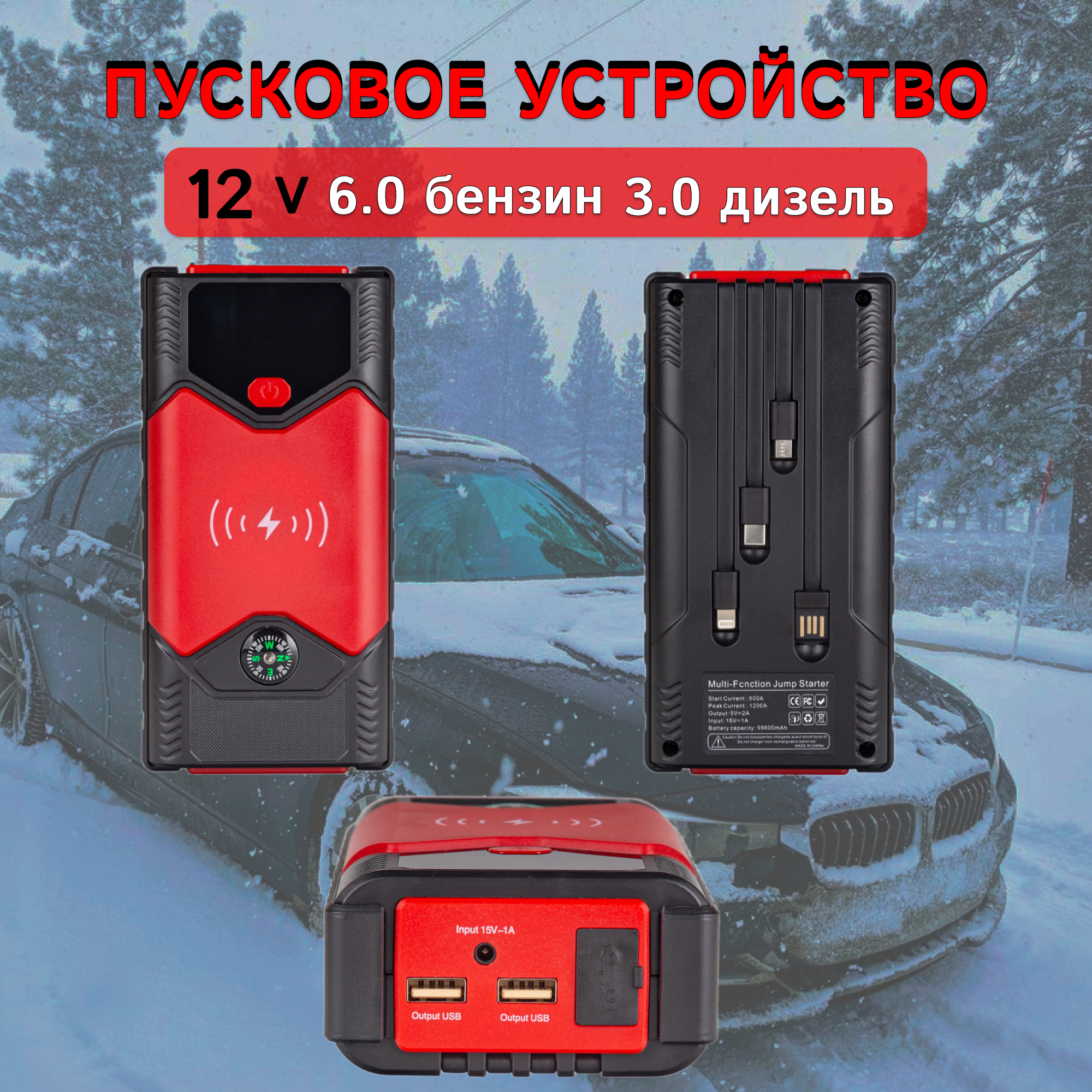 Портативное пуско-зарядное пусковое устройство с емкостью аккумулятора 28 000 mAh информация: