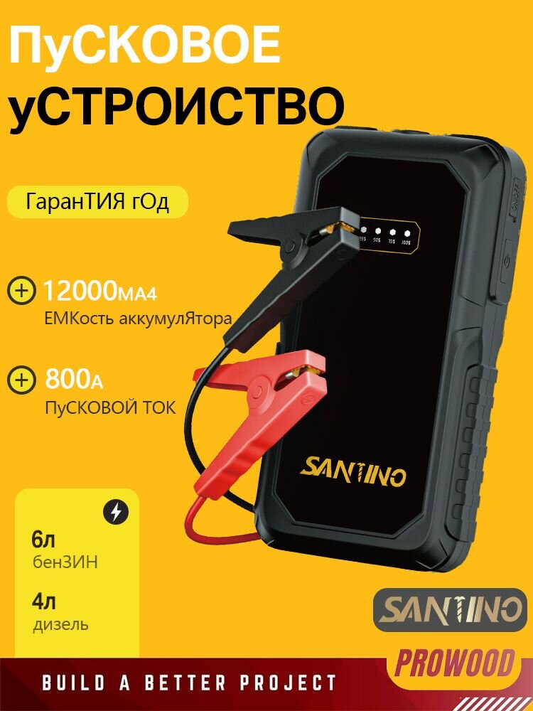 Пусковое устройство для авто, LED фонарь, черный матовый, 800 А, 18 см
