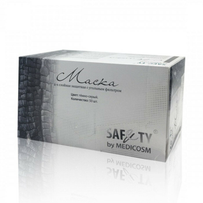 10 цен на Маски защитные четырехслойные Safety с угольным фильтром (50 шт, Темно-серый)