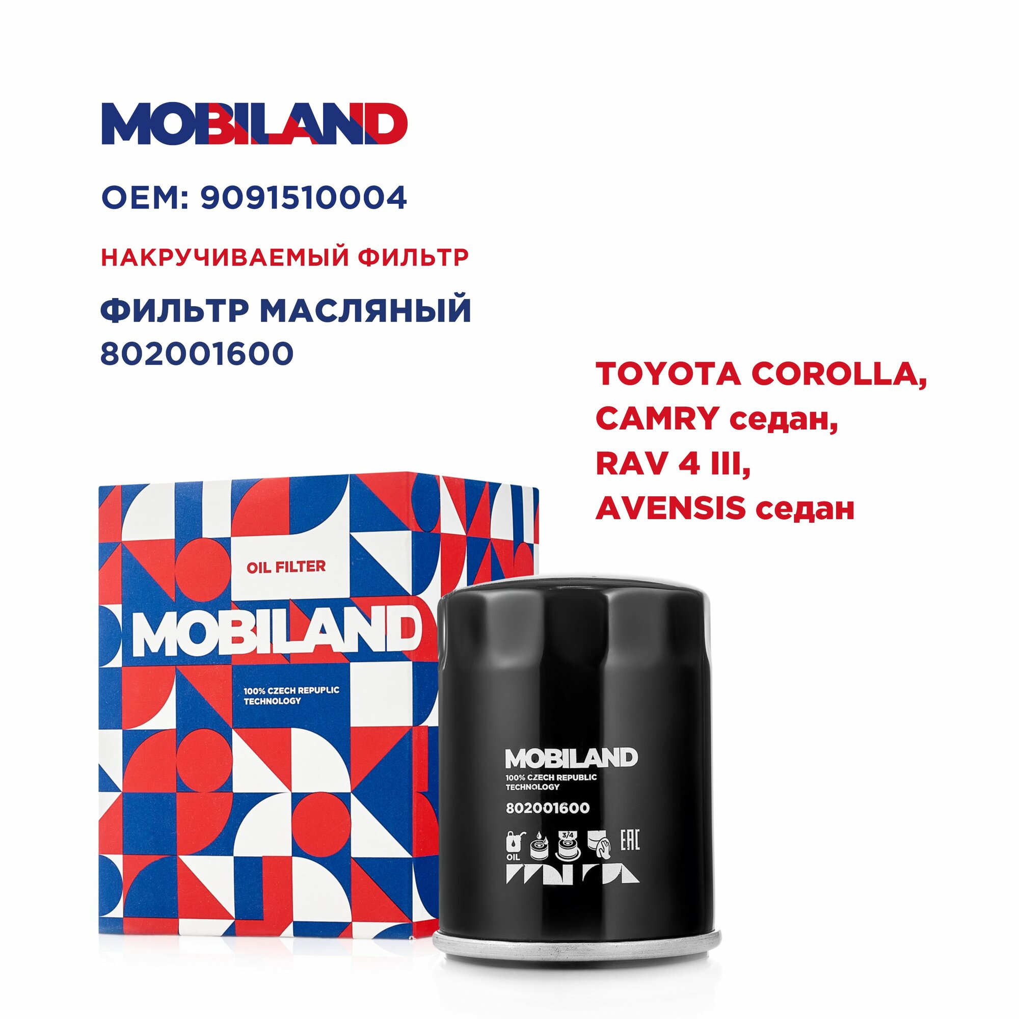 10 цен на Фильтр масляный для а/м TOYOTA COROLLA CAMRY седан, CAMRY седан, RAV 4 III, AVENSIS седан, MOBILAND 802001600