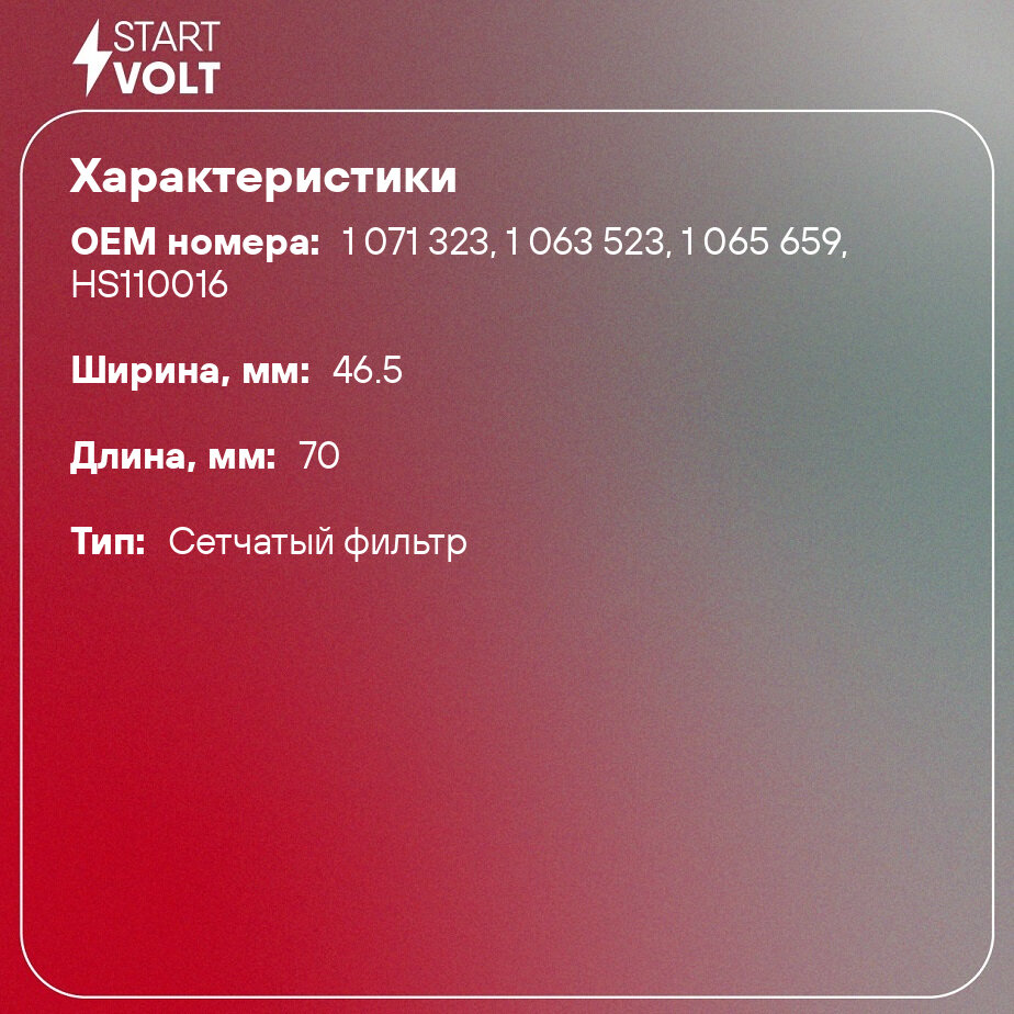 Отзывы на Фильтр электрического бензонасоса для автомобилей Ford Focus I (98-) 2.0i (D=11мм) SFF 1002 StartVolt