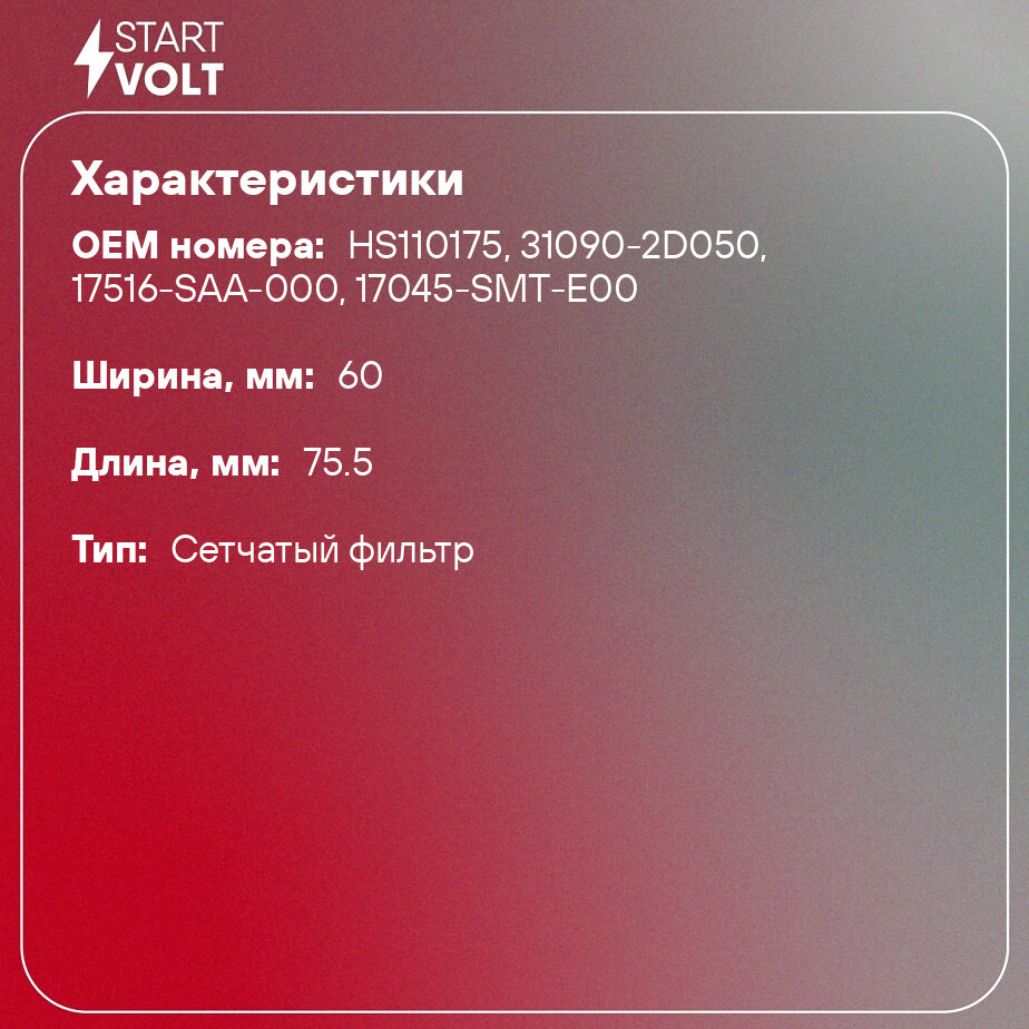 Фильтр электрического бензонасоса для автомобилей Honda CR-V (02-)/Fit (01-) (D=11мм) SFF 2300 StartVolt информация: