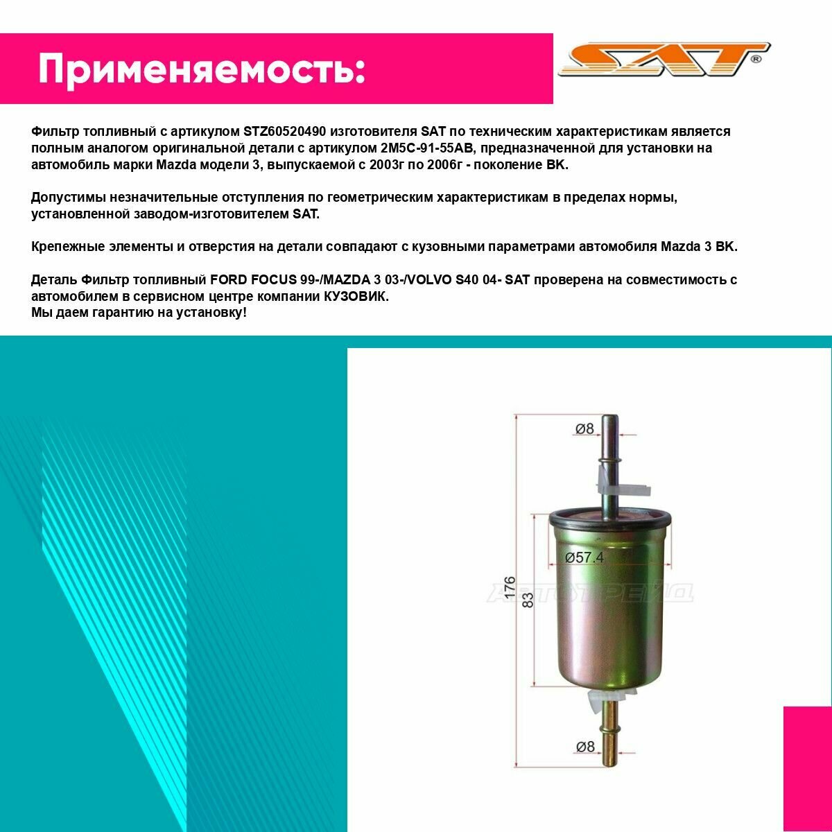 10 цен на Фильтр топливный FORD FOCUS 99-/MAZDA 3 03-/VOLVO S40 04- SAT мазда 3
