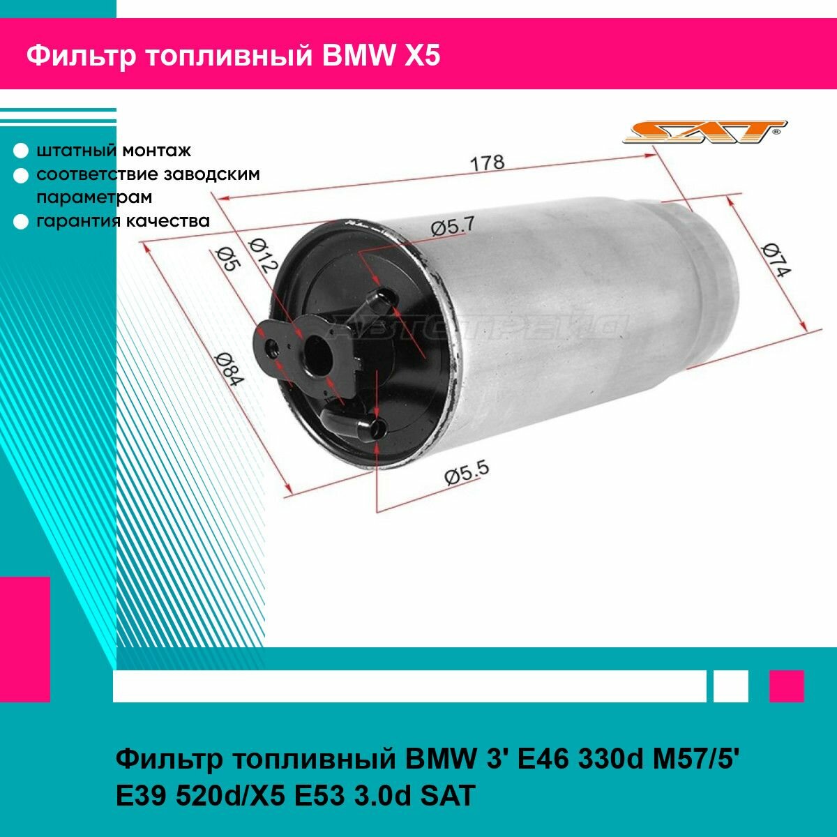 Отзывы на Фильтр топливный BMW 3' E46 330d M57/5' E39 520d/X5 E53 3.0d SAT БМВ х5