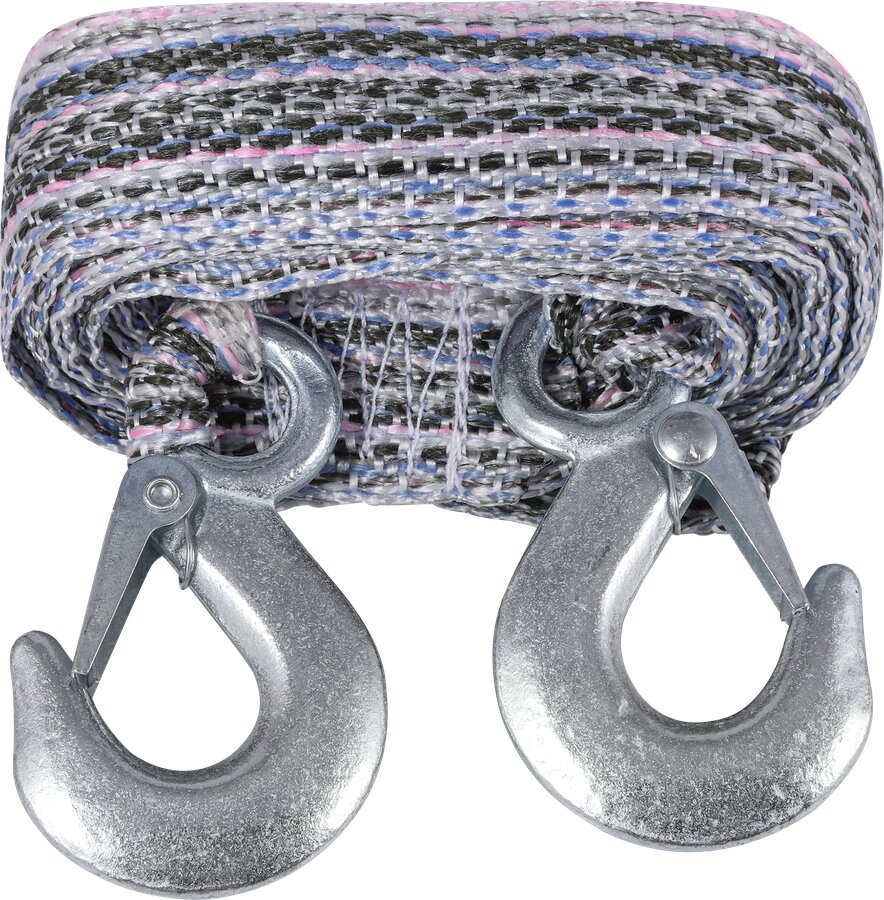 Трос буксировочный лента 5 т, 2 крюка, в блистере (стропа усиленная)