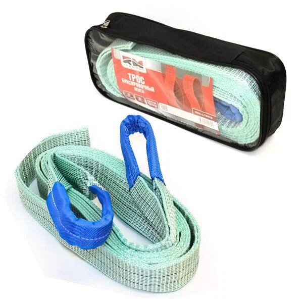 Трос буксировочный лента 5 т, 2 крюка, в блистере (стропа усиленная)