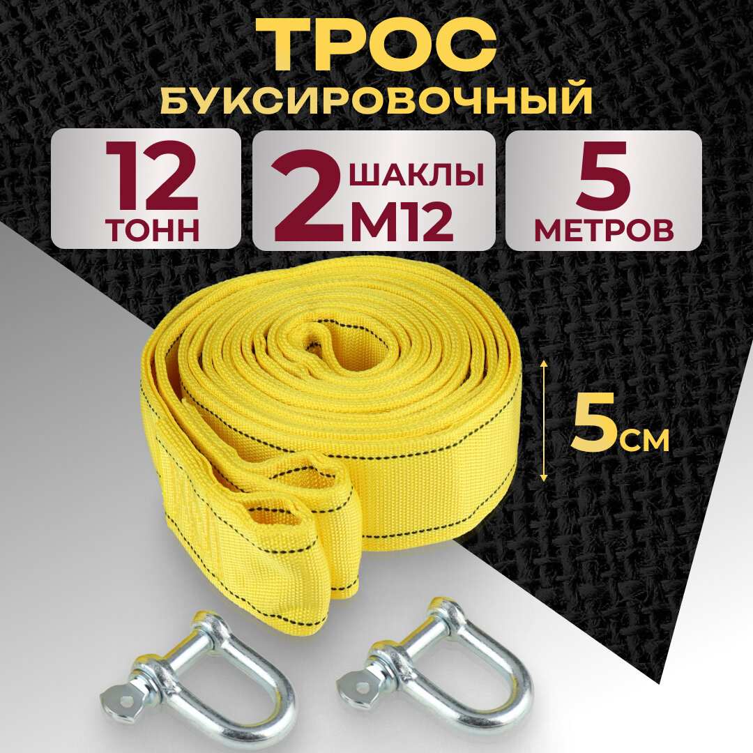10 цен на Автомобильный буксировочный трос (стропа) с шаклами, 12 тонн, 5 метров. Артикул АБТ-4038