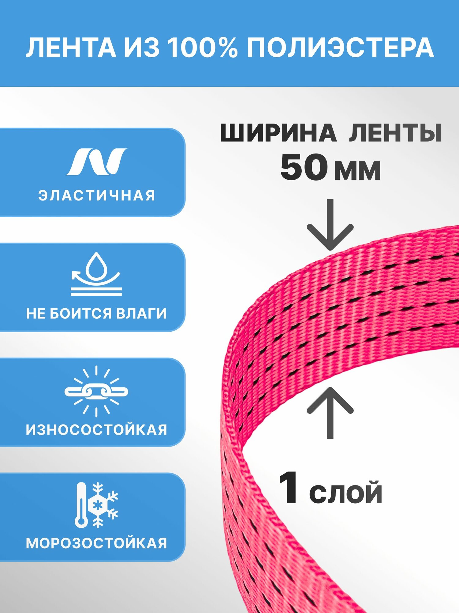 Трос буксировочный лента 5 т, 2 крюка, в блистере (стропа усиленная)