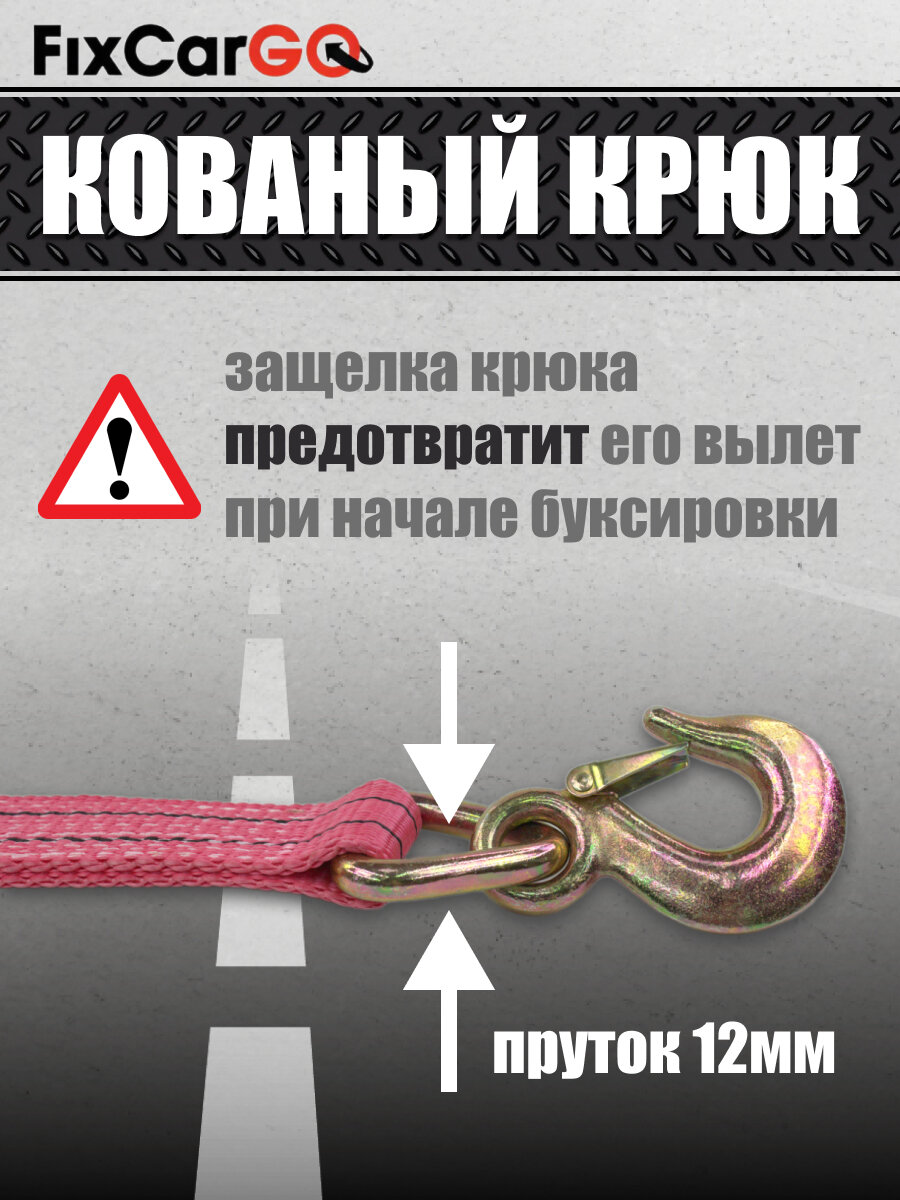Трос буксировочный с крюками, 60 мм, 10 т, 5 м. информация: