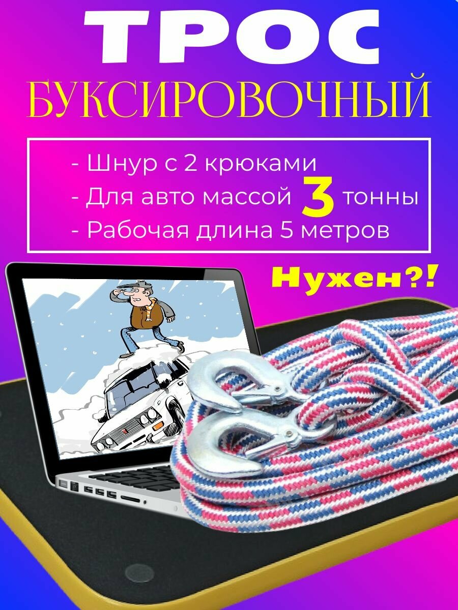 Отзывы на Трос буксировочный для автомобиля 3 т (3 тонн) 5 метров шнур канат с 2 крюками карабинами