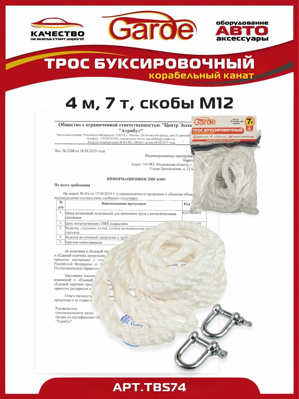 10 цен на Трос буксировочный 7 т скобы М12 4 м Garde корабельный канат в сумке