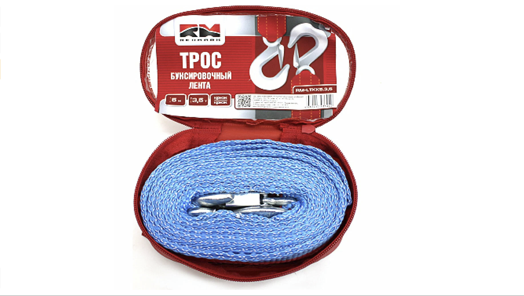 Отзывы на Трос буксировочный лента RedMark, длина 5 м, грузоподъемность 3,5 т, крюк/крюк, синий цвет