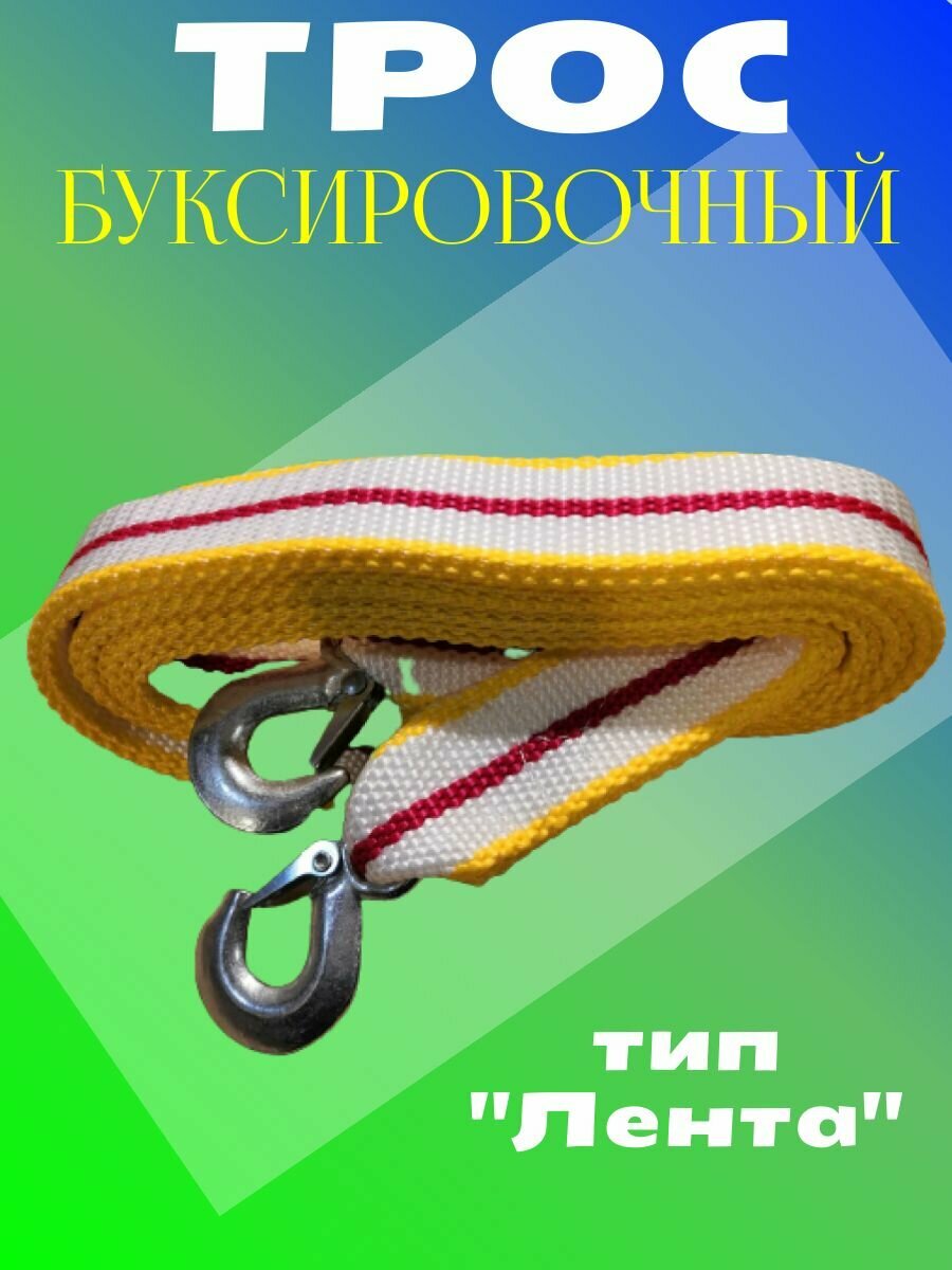 10 цен на Трос буксировочный для автомобиля 7 т (7 тонн) 5 метров лента с 2 крюками карабинами