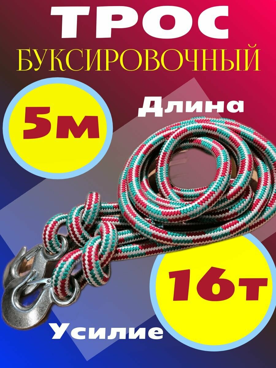 10 цен на Трос буксировочный для автомобиля 16 т (16 тонн) 5 метров шнур канат с 2 крюками карабинами