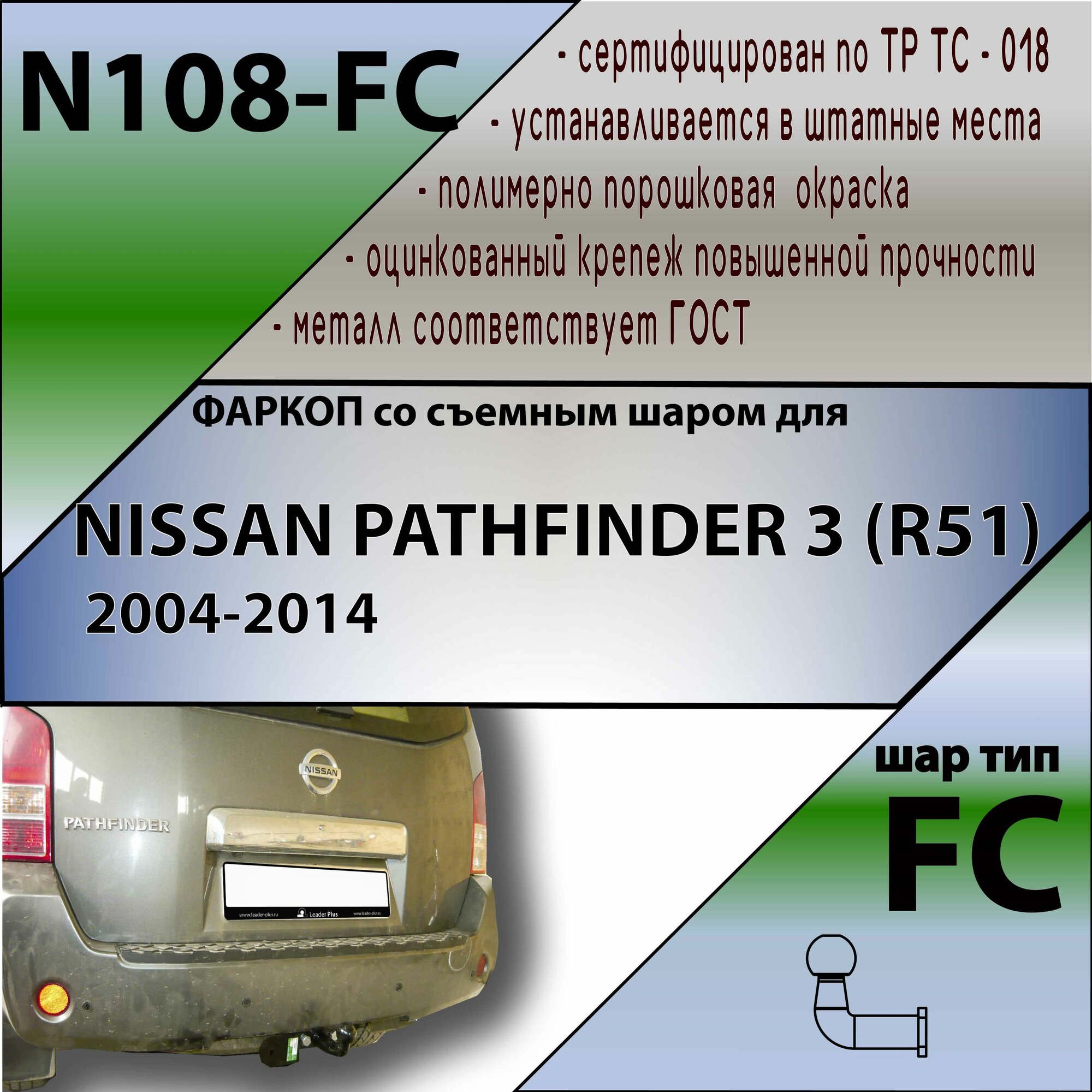 Фаркоп ТСУ для Ниссан Патфайндер 3 (R51) 2004-2014 / NISSAN PATHFINDER 3 (R51), Лидер+ информация: