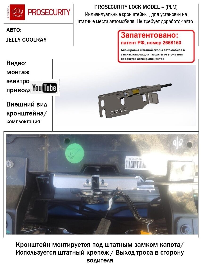 Механический замок капота для Geely Coolray, Belgee X50 PROSECURITY информация: