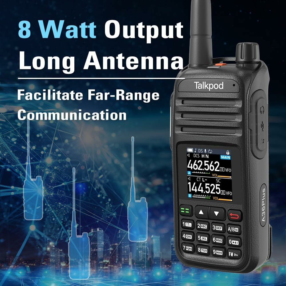 Характиристики этого товара не найдены!Отзывы на Рация TalKpod A36Plus MAX ( 136-174/400-480) МГц/ 512 кан./ 8 Вт2000 Мач