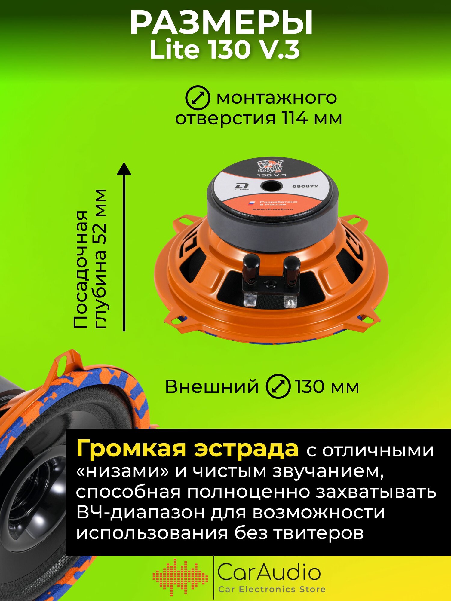 Колонки автомобильные DL Audio Gryphon Lite 130 v.3 / эстрадная акустика 13 см. (5 дюймов) / комплект 2 шт. информация: